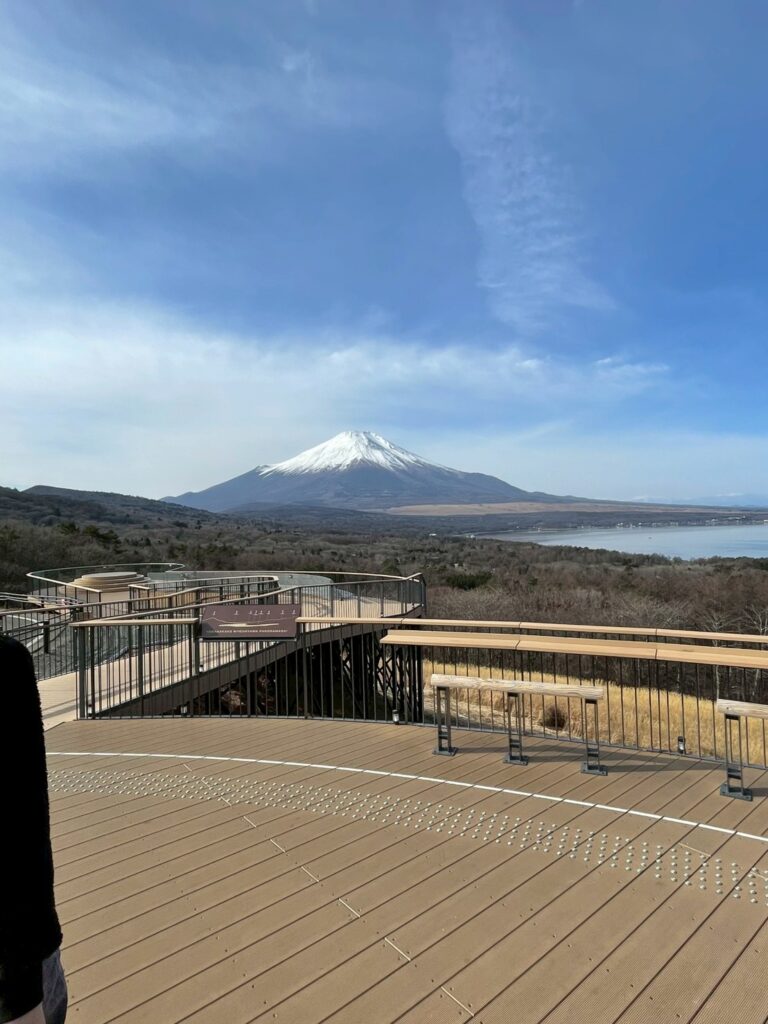 雪が積もっていて、とても綺麗な富士山でした。