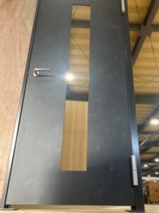 化粧板と基材を貼り合わせる機械です。プレス機に高周波の電極を組み合わせたもので、従来のコールドプレスよりも圧倒的に短い養生時間でプレスを行うことができます。