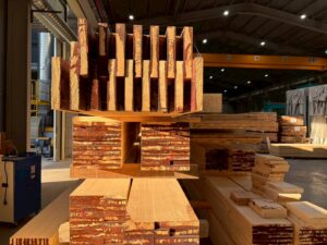 ベニヤやランバーなどの基材を切断する機械です。従来のパネルソーとは異なり、高速で多量のカットを行うことができます。