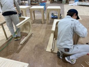 家具を組み立てる際に使用します。この機械のお陰でノックダウンでの組み立てをできるようになり作り方の概念が大きく変わりました。